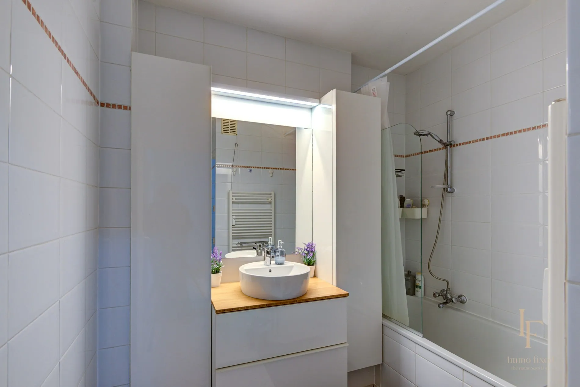 De badkamer werd recent vernieuwd en combineert frisse afwerking met praktisch comfort. De keuken is aan vernieuwing toe, maar dat maakt ze net de perfecte kans om er jouw droomkeuken van te maken.