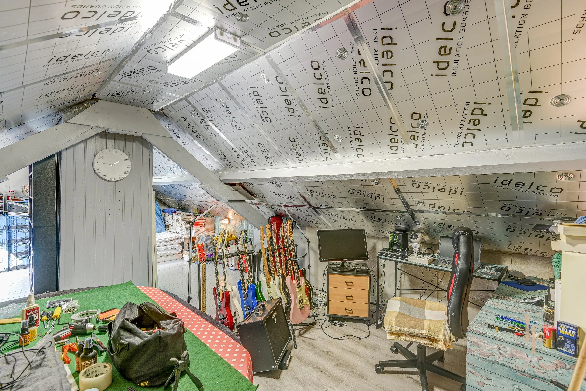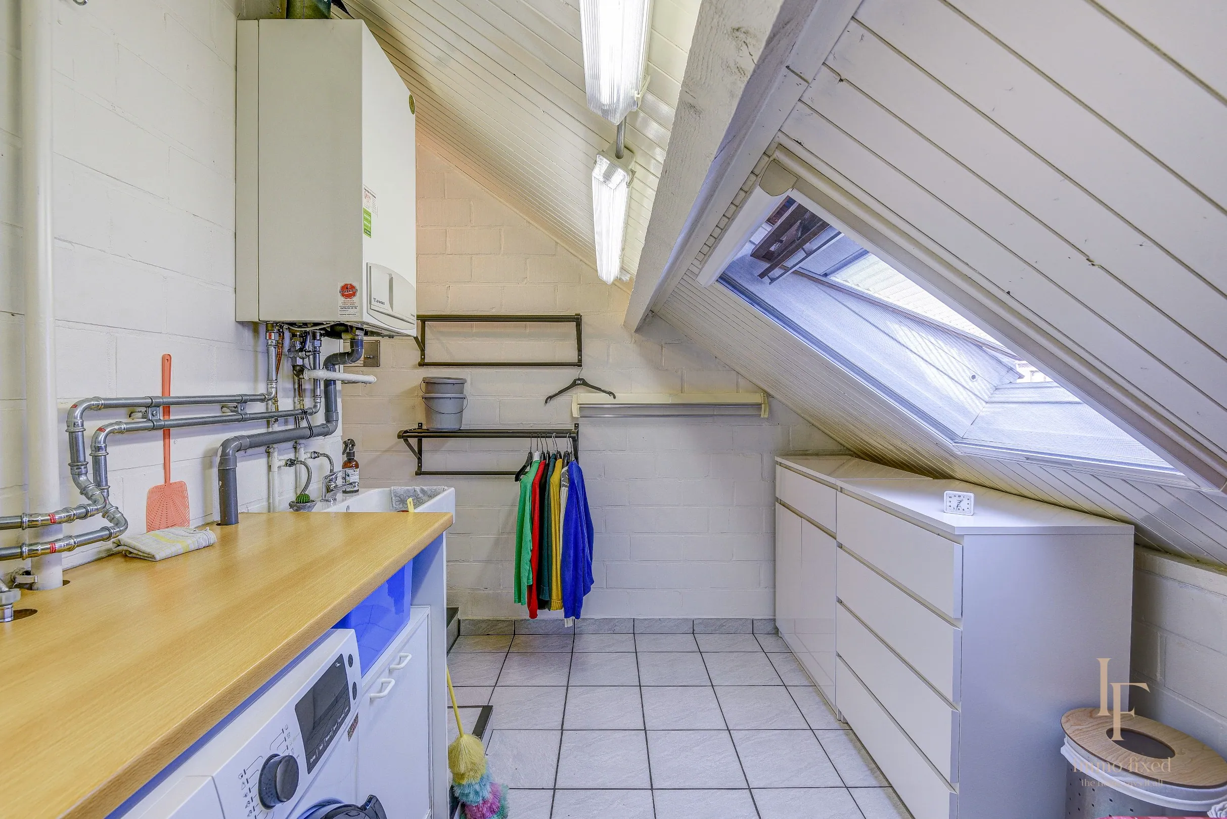 Via een vaste trap bereikt u de volledig geïsoleerde zolder van maar liefst 40 m². Deze ruimte kan perfect dienen als hobbyruimte, extra grote slaapkamer of zelfs worden opgedeeld in twee bijkomende slaapkamers.